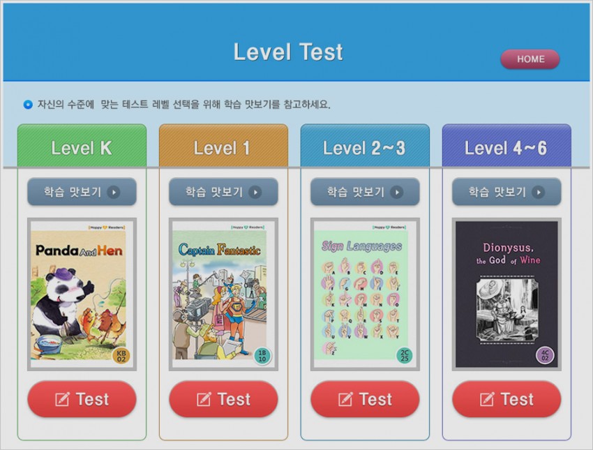리딩게이트 레벨 테스트후 나온 레벨에 맞추어 리딩게이트 체험 수업 할수 있구요. 너무 높게 나왔다 싶으면 단계를 낮추어서 해도 됩니다.