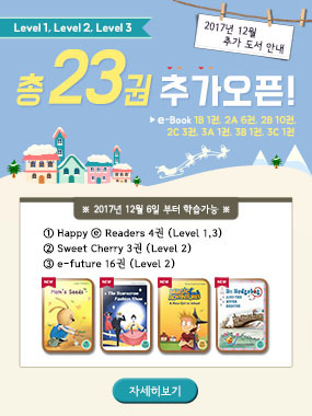 2017년 12월 리딩게이트 추가 도서 안내 그레이스 끝내기 17-12-18 관련링크 2017년 12월 리딩게이트 추가 도서 안내 입니다 리딩게이트 level 1 2 3 23권 추가 오픈 E-book 1B 1권 2A 6권 2B 10권 2C 3권 3A 1권 3B 1권 3C 1권 입니다 댓글목록 등록된 댓글이 없습니다. 목록