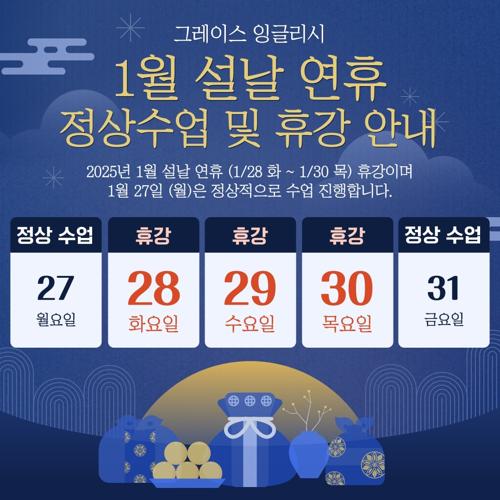 2025년 그레이스 잉글리시 설 정상수업 및 휴강일 안내