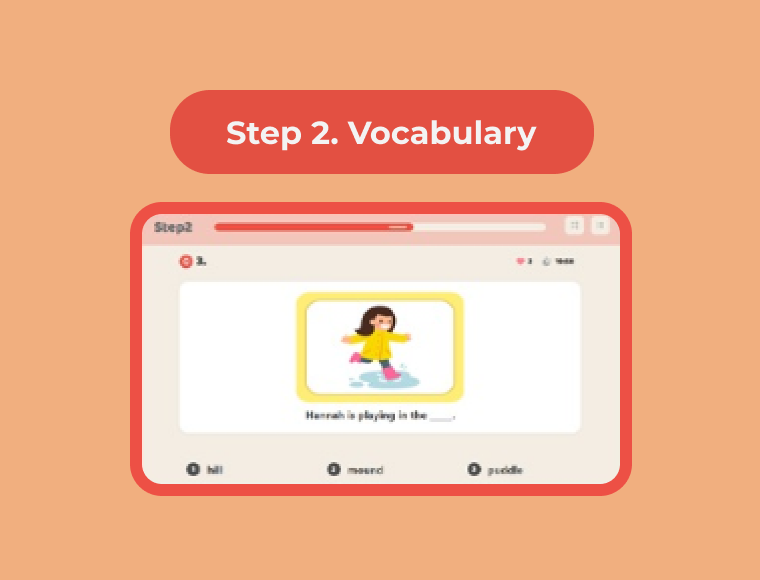 온라인 독후 활동 step 2 에서 가능 선생님과 수업때 단어 확인테스트로 마무리